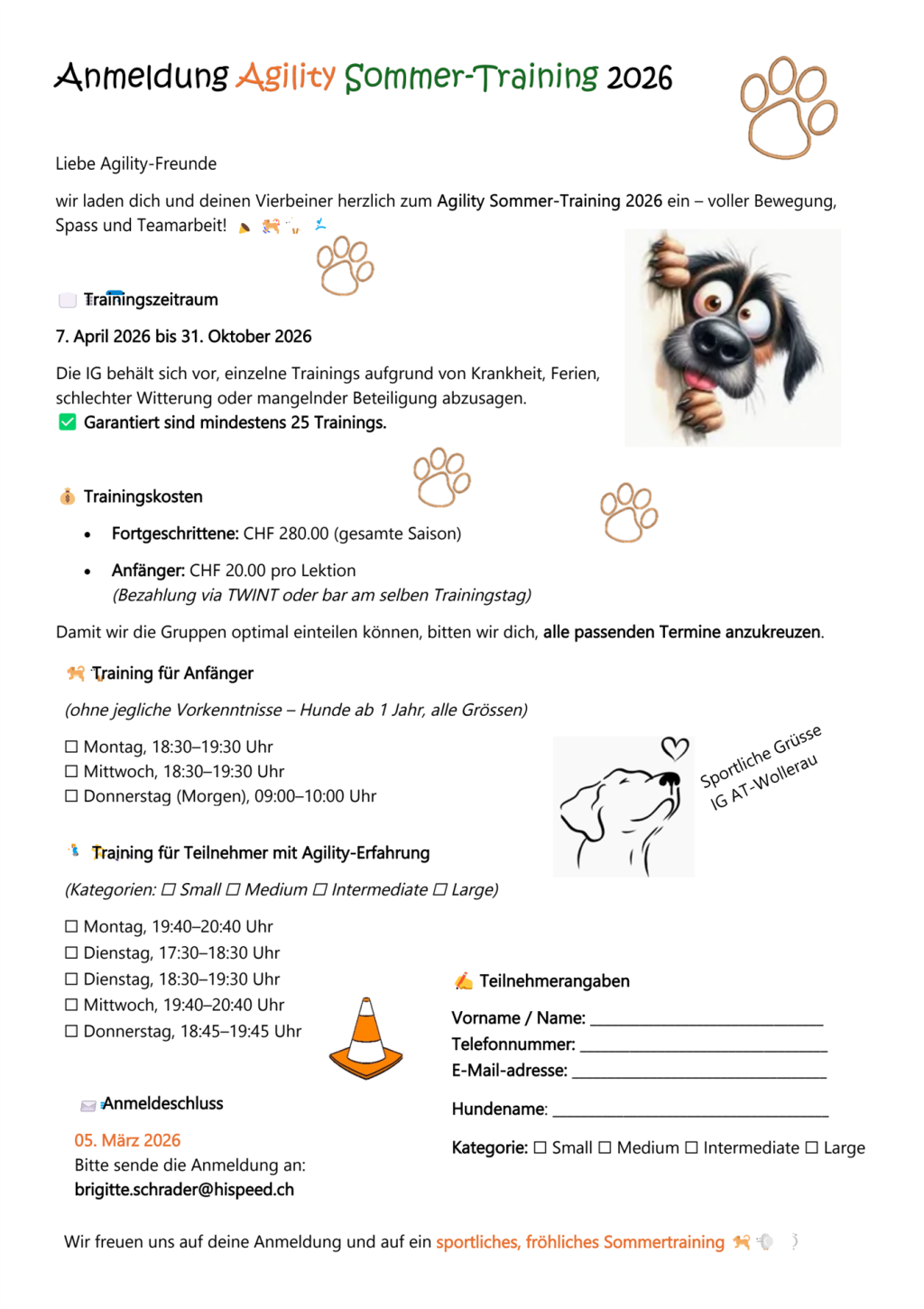 Bitte denkt daran, eure Hunde vor dem Training versäubern zu lassen.