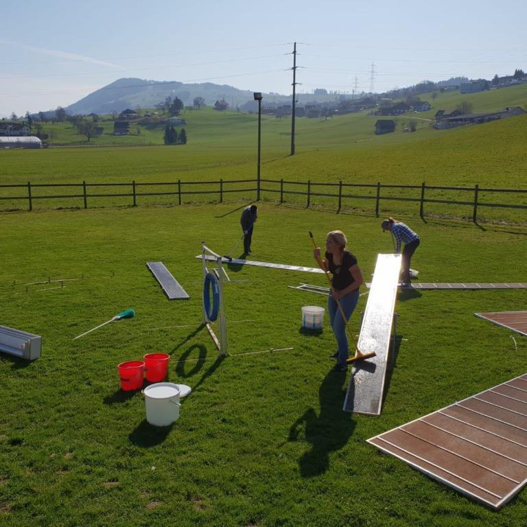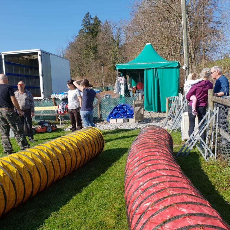 Am letzten Samstag, den 30.03.2019 bei herrlichem Wetter und ca. 20 Grad, konnten wir wieder die Geräte von der Winterhalle auf unseren Agility -Platz transportieren. Mit vielen lieben Leuten, wurden die Geräte und kompletten Zonen geschruppt, so das sie wieder fast wie neu aussehen. Wir danken allen fleißigen Helfern das sie uns tatkräftig unterstütz haben. Die Saison im Grünen kann wieder beginnen..